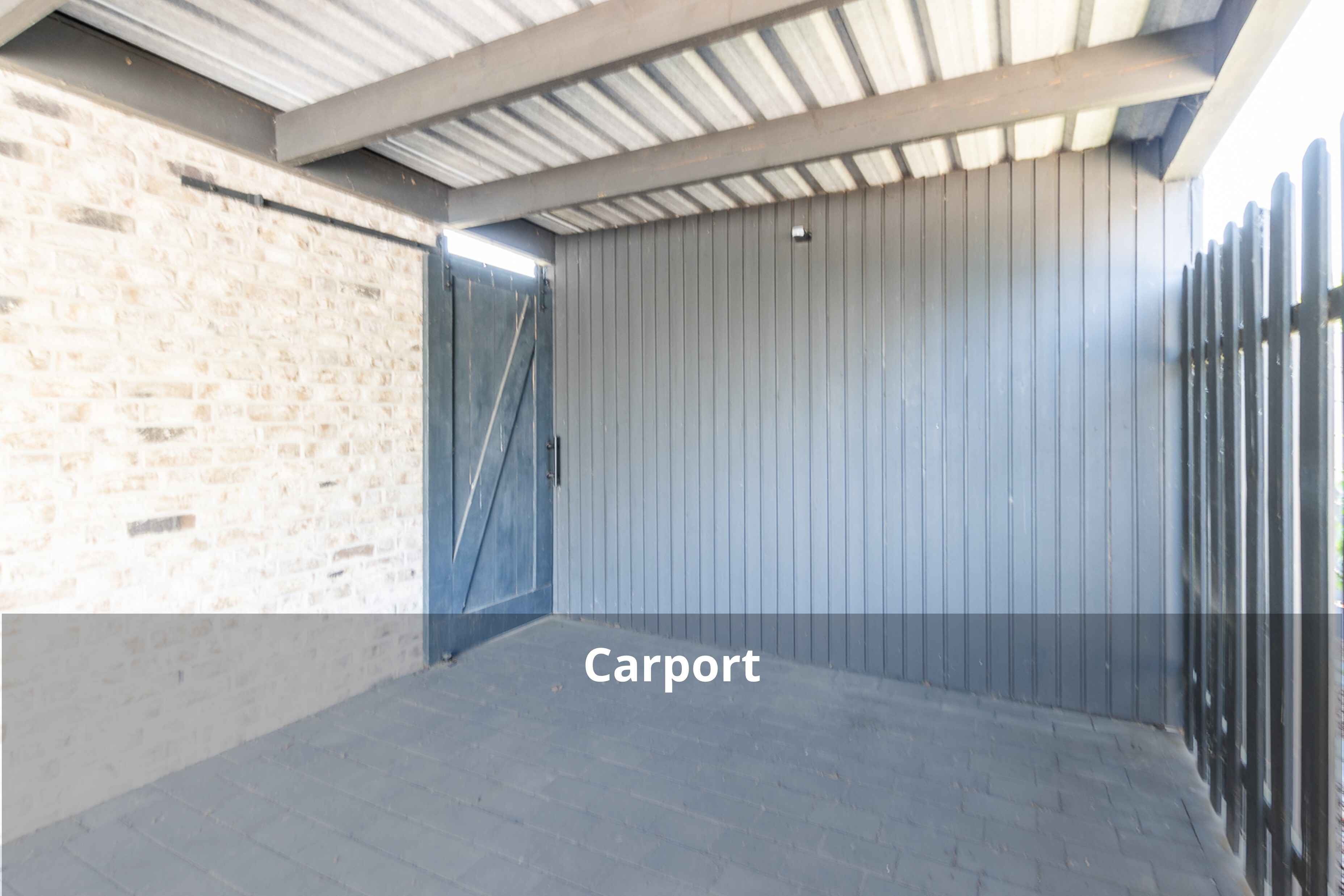Die natürliche Holzkonstruktion des Carports fügt sich harmonisch in das Gesamtbild des Hauses ein. Es wurde 2018 errichtet und bietet über eine Seitentür Zugang zum Garten und zum angrenzenden Geräteraum. Ein Stromanschluss ist vorhanden. Die Nebenfläche beträgt ca. 23,60 m².